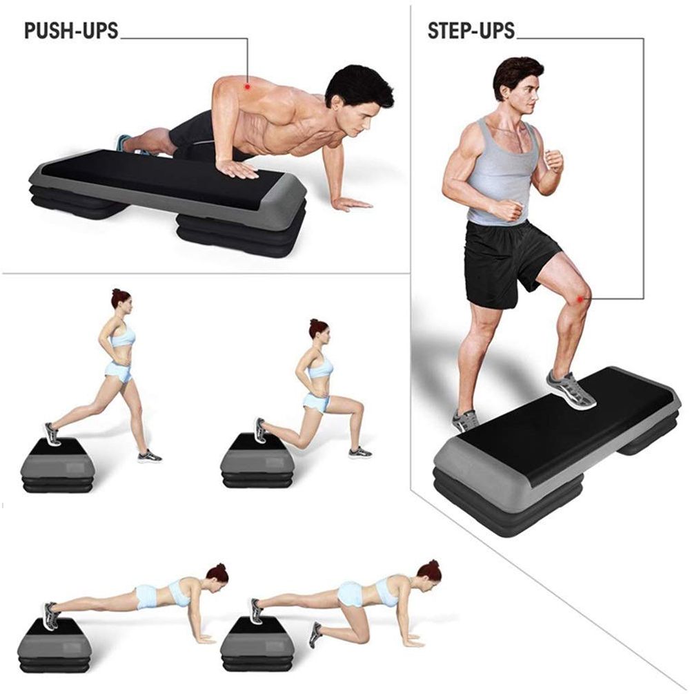1.Challenge your workout with 3 settings of adjustable height (4", 6", 8"), you can raise or lower the height according to self requirements. 3 different settings for more strenuous exercise,such weight loss, muscle-building and toning ,promote better balance, flexibility and endurance.